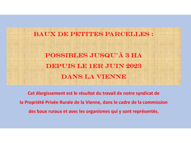 En savoir plus... Bonne nouvelle à propos des Petites parcelles dans la Vienne