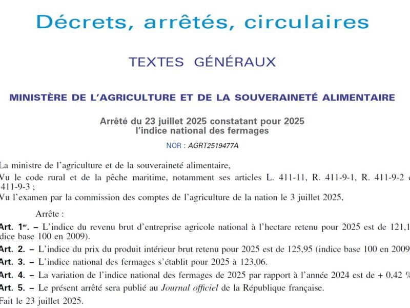 Publication de l’indice des fermages 2025 à appliquer pour le calcul des échéances au 1er octobre 2025