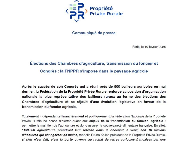 Élections des Chambres d’agriculture, transmission du foncier et Congrès : la FNPPR s’impose dans le paysage agricole
